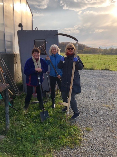 Inndelt i grupper, fikk vi høstet inn alle vannslanger, tildekket komposten, merket og telt alle redskaper, ryddet i drivhus og tørkehus og mye mye mer.